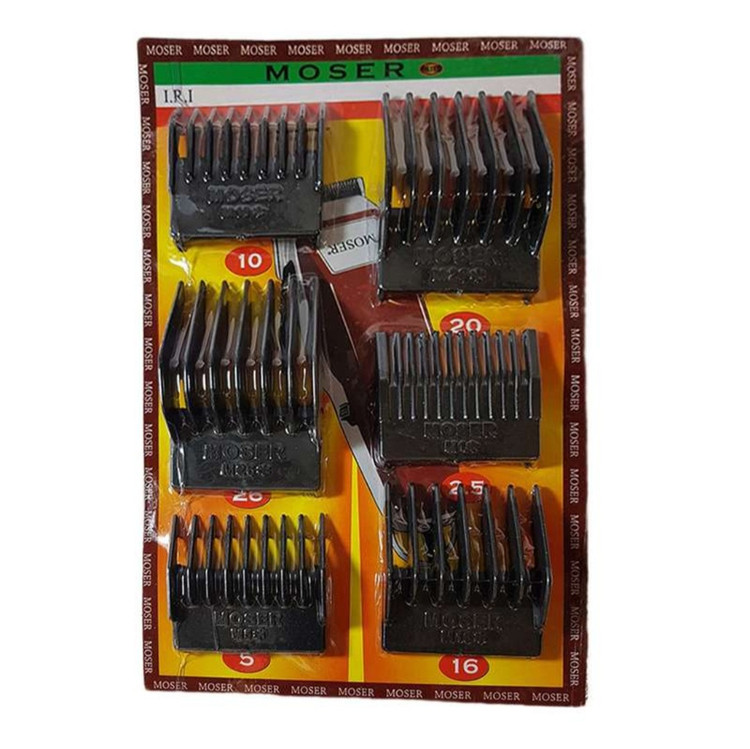 پک این محصول دارای 6 عدد شانه مخصوص ماشین اصلاح موزر می باشد که طول اصلاح آنها